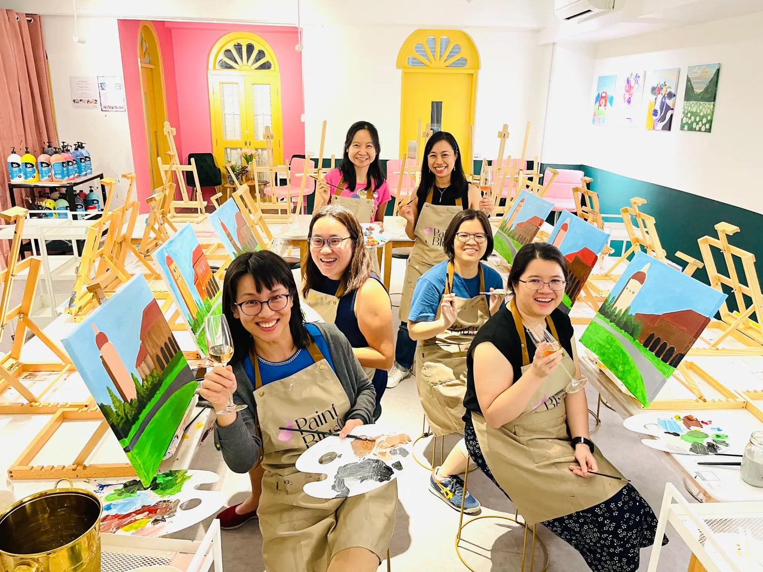 Gather your friends for a relaxed and enjoyable Art Jamming session at Paintblush, Singapore’s first Sip 'N' Paint art studio. Choose your preferred level of guidance—paint freely, or follow step-by-step instructions with our Signature session. Bring along your favourite drinks and snacks to elevate the experience. Conclude your creative journey with a professional Photobooth session, capturing lasting memories with your masterpieces!