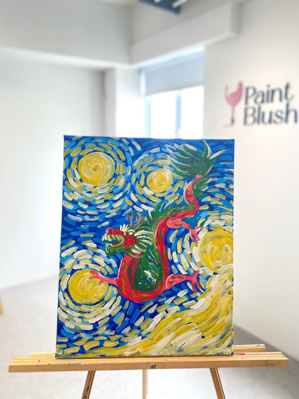 Oriental red dragon in Van Gogh style